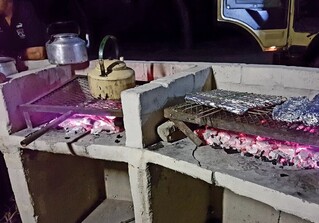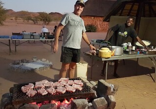 We are renowned for providing wholesome tasty meals using fresh ingredients. We cook outside on charcoal and gas BBQs. Meals are served buffet-style on a main table and we have camp stools to sit on.
