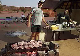 We are renowned for providing wholesome tasty meals using fresh ingredients. We cook outside on charcoal and gas BBQs. Meals are served buffet-style on a main table and we have camp stools to sit on.